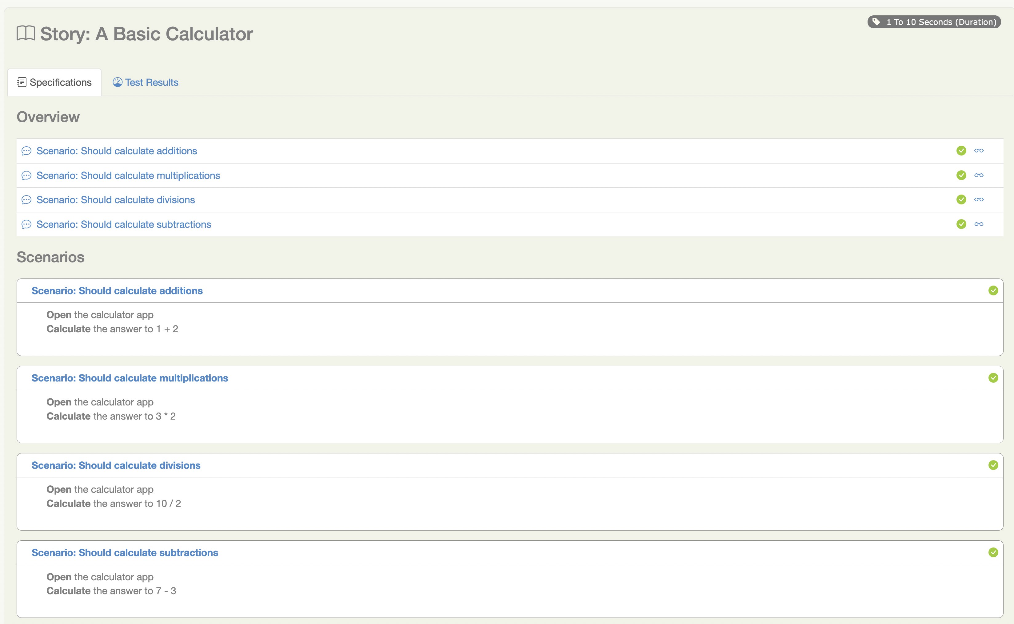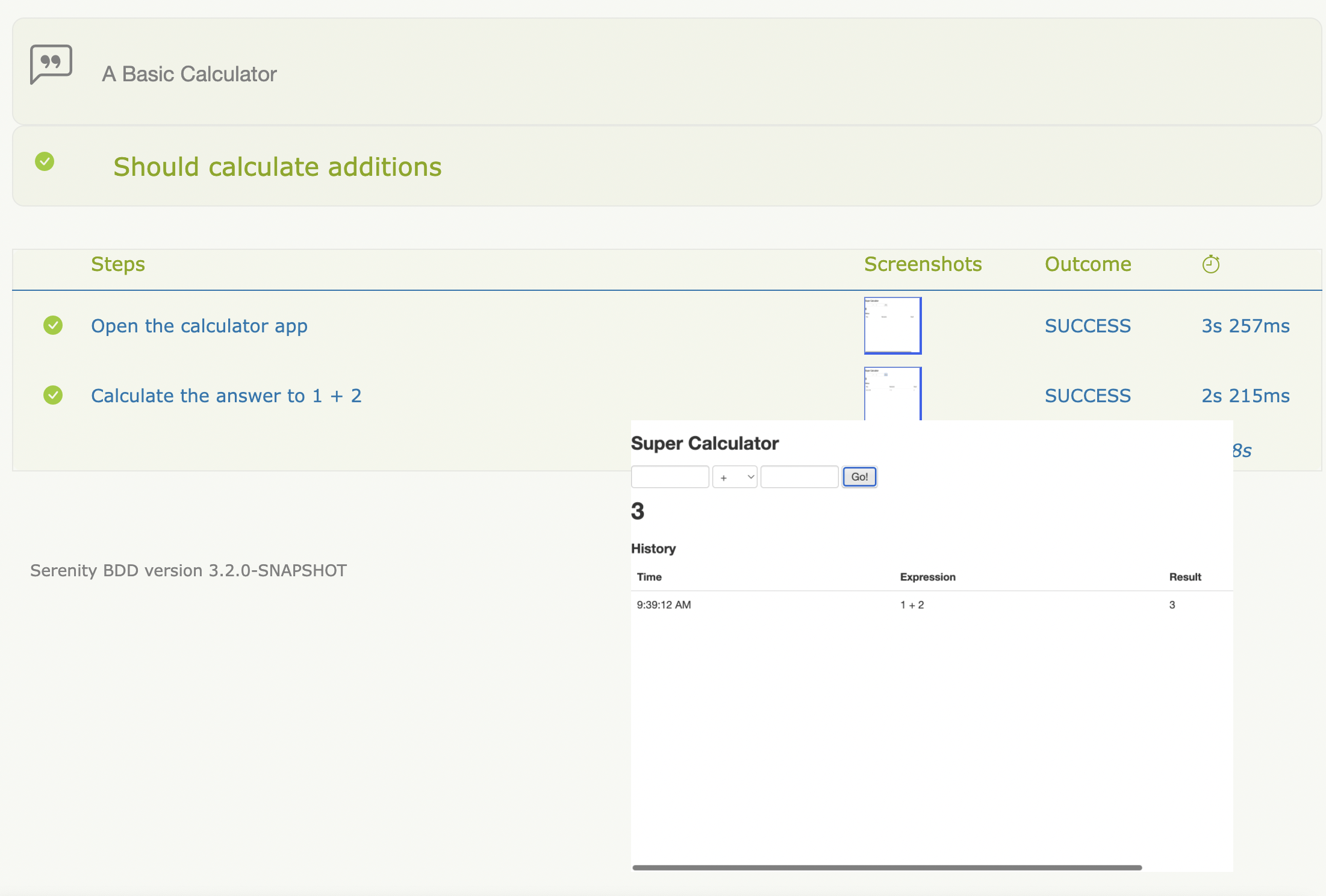 Quando executamos este caso de teste, o Serenity documentará os passos que são executados durante cada teste, produzindo uma documentação viva da execução do teste: